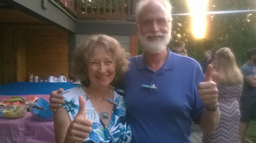 August 10, 2015 Jord and Kaylee invited friends to share the results of their most recent ultrasound - a "gender reveal" party! After a BBQ supper the box was opened ... releasing blue balloons! |