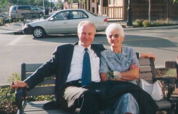 ![]() Mom was able to travel to Calgary for Shaun and Naomi's wedding in 2003. She and Jim enjoyed a moment outside the ice cream shop! |